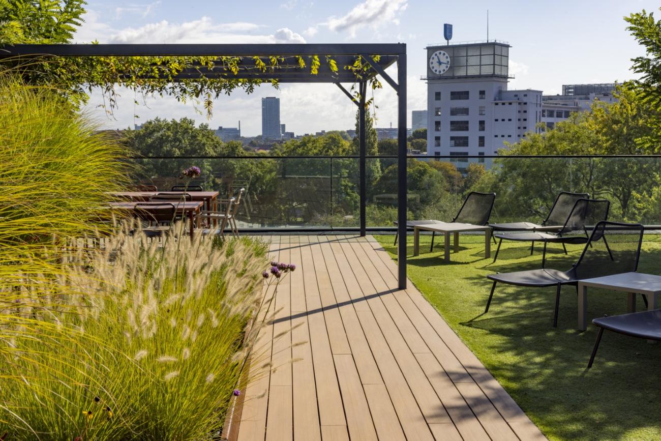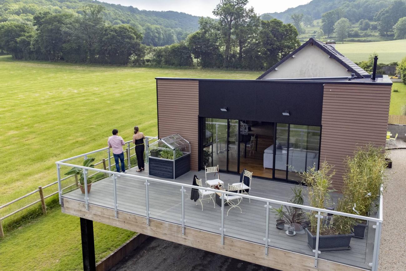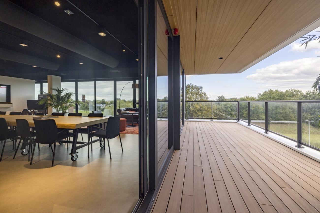 Unsere Terrassendiele Atmosphere aus Verbundholz ist mit all unserem Montage- und Fertigstellungszubehör (einschließlich Beleuchtungsoptionen) kompatibel.