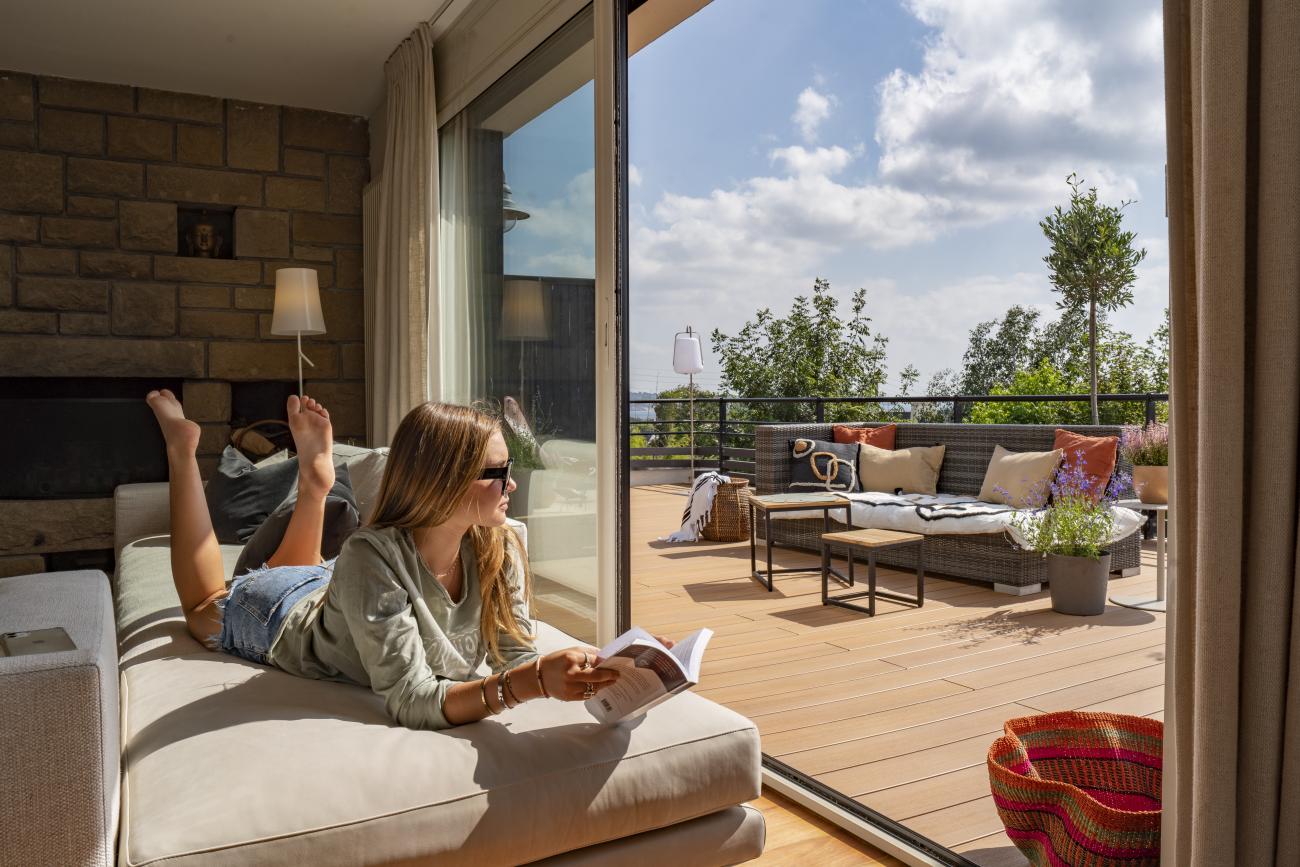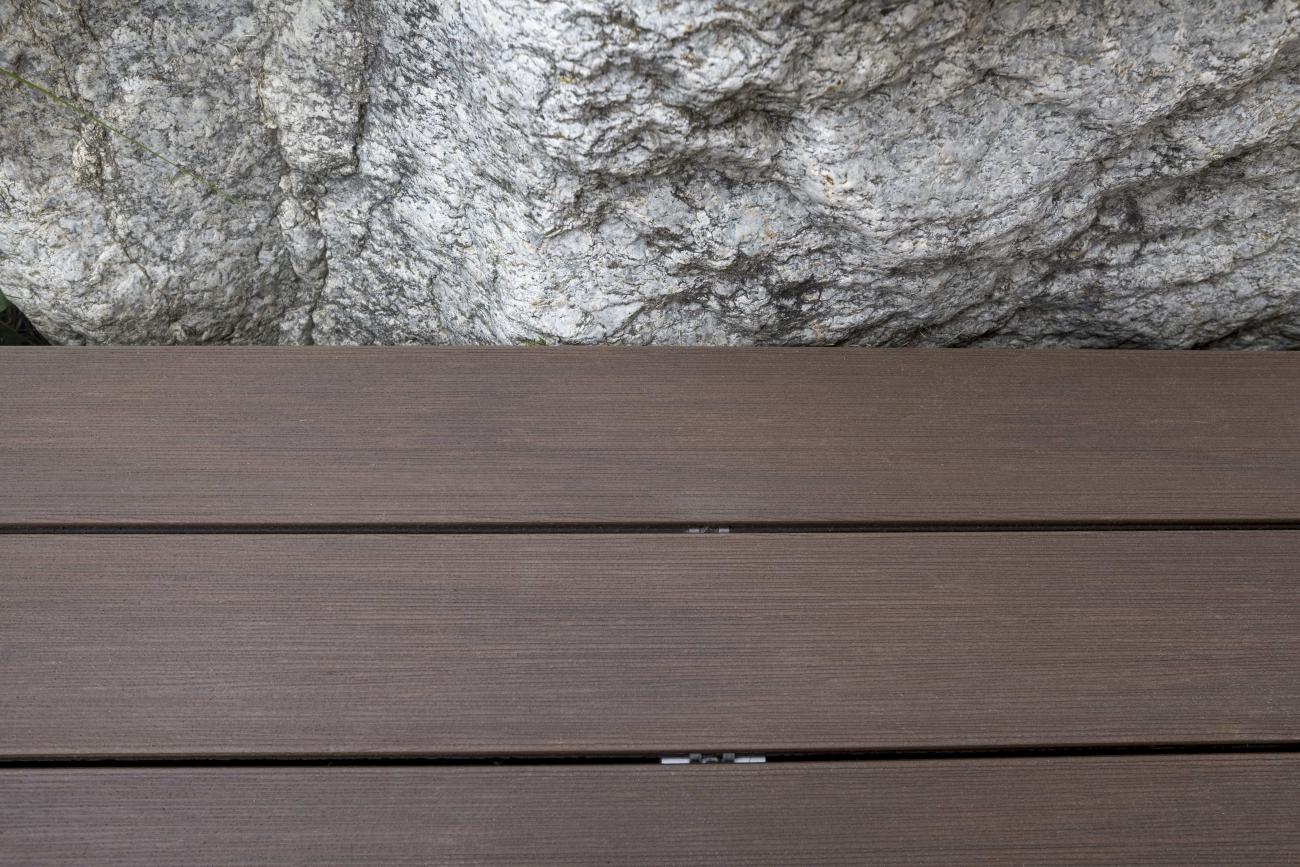 Sie möchten, dass die Farbe Ihrer Verbundholzterrasse nicht mit der Zeit verblasst? Die kräftige Farbe unserer co-extrudierten Terrassendiele Atmosphere bleibt über die Jahre hinweg stabil.
