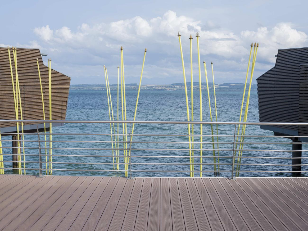 Unsere Terrassendiele Elegance gerillt kombiniert alle Eigenschaften, die man von einer traditionell genutzten Verbundholzterrasse erwartet: so ist sie äußerst rutschfest – ob barfuß oder beschuht.